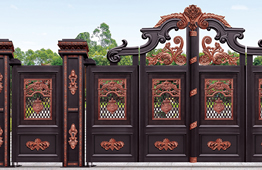 別墅庭院大門材質(zhì)選用高端硬鋁合金型材,以及整體實心鑄鋁花件,純手工拼接制作而成。